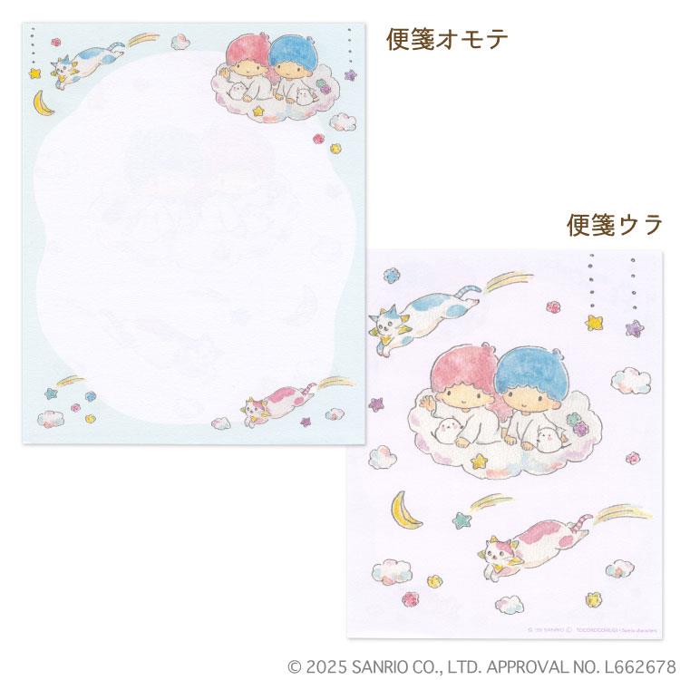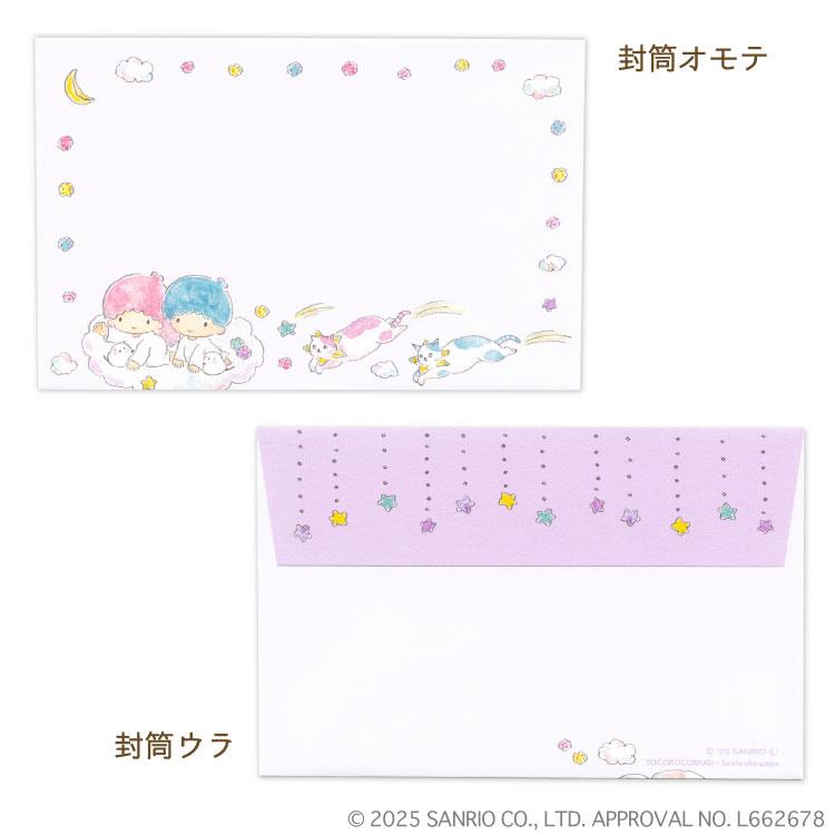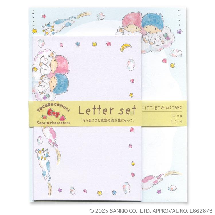 - レターセット トコロコムギ×サンリオキャラクターズ キキ&ララと夜空の流れ星にゃんこ