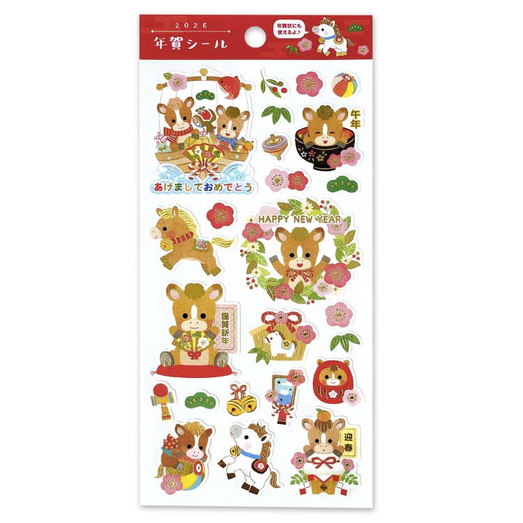 色鮮やかなイラストと華やかな金箔が、年賀状やぽち袋のデコにぴったりで、様々にお楽しみいただけます。