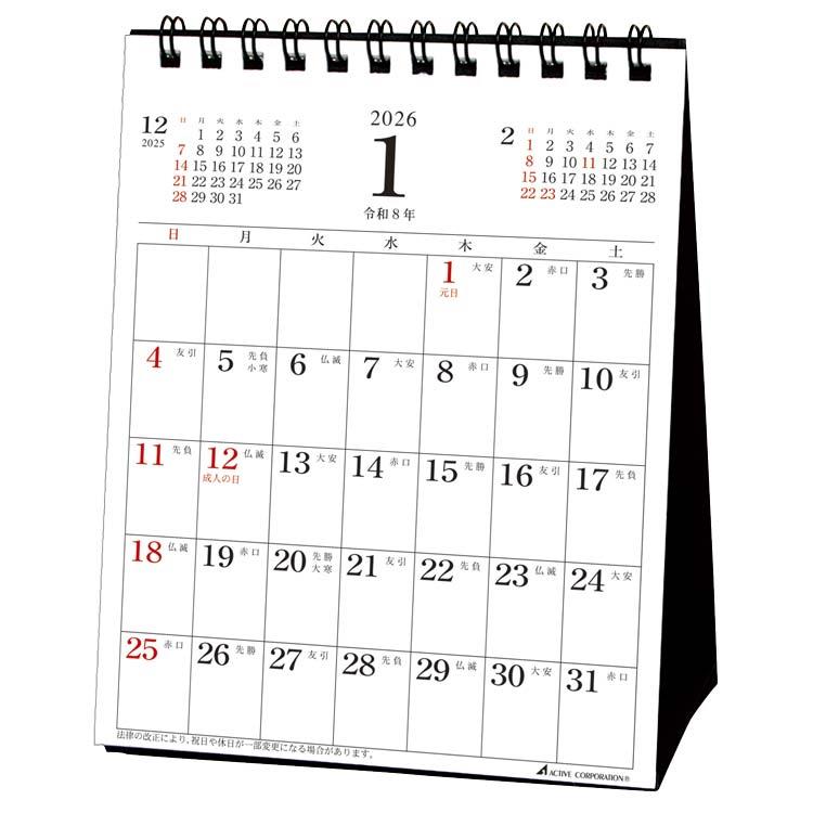 2026年1月始まりカレンダー 卓上 マンスリー 縦 ACL-564