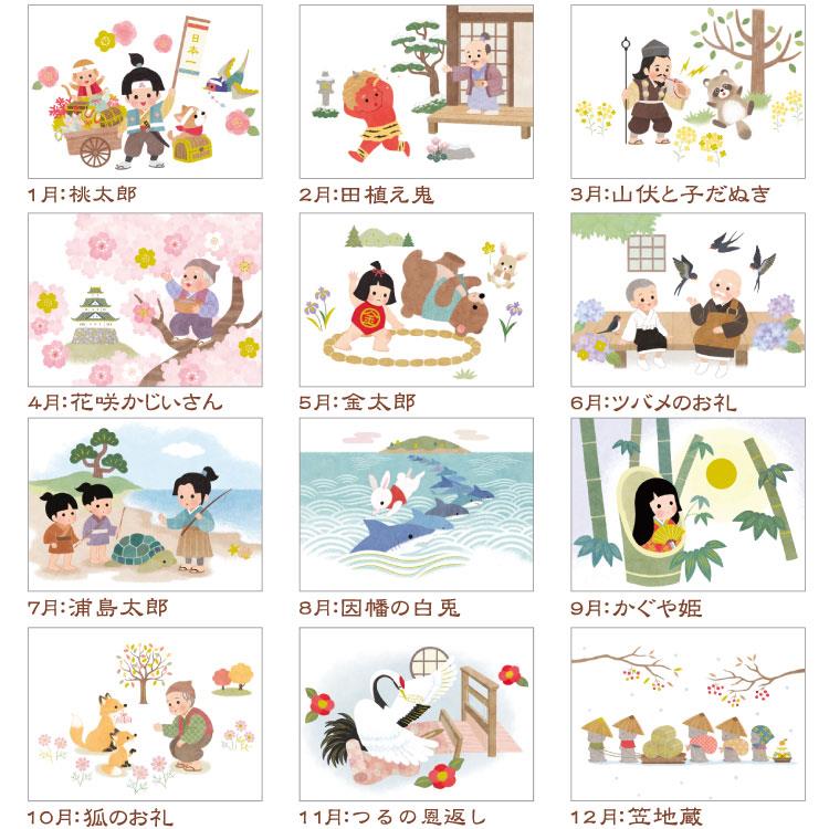 可愛いイラストの日本昔ばなしの卓上カレンダー