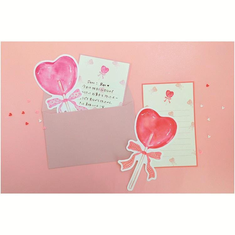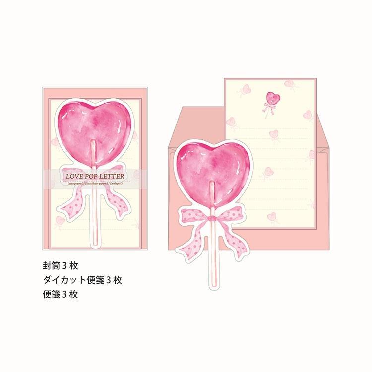 ロリポップ型のダイカット便箋付きレターセット「LOVE POP LETTER(ラブポップレター)」。