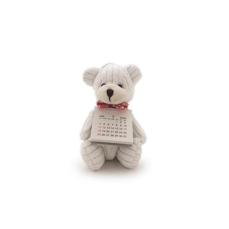 - 2026年1月始まり 卓上 ベアカレンダー コーデュロイ ホワイト