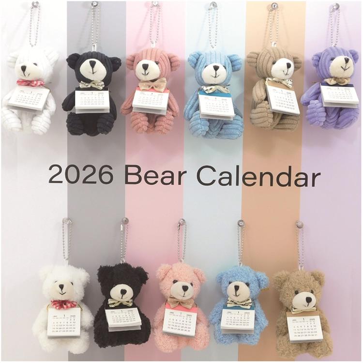 - 2026年1月始まり 卓上 ベアカレンダー コーデュロイ ピンク