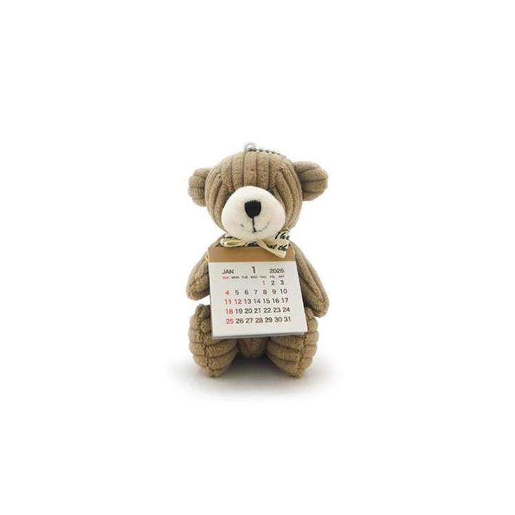- 2026年1月始まり 卓上 ベアカレンダー コーデュロイ ブラウン