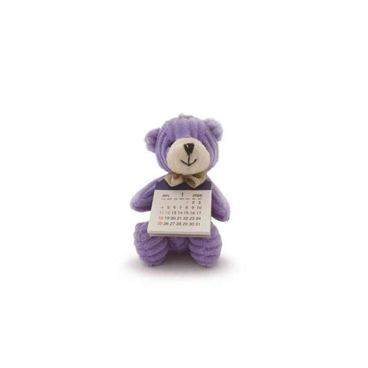 - 2026年1月始まり 卓上 ベアカレンダー コーデュロイ パープル
