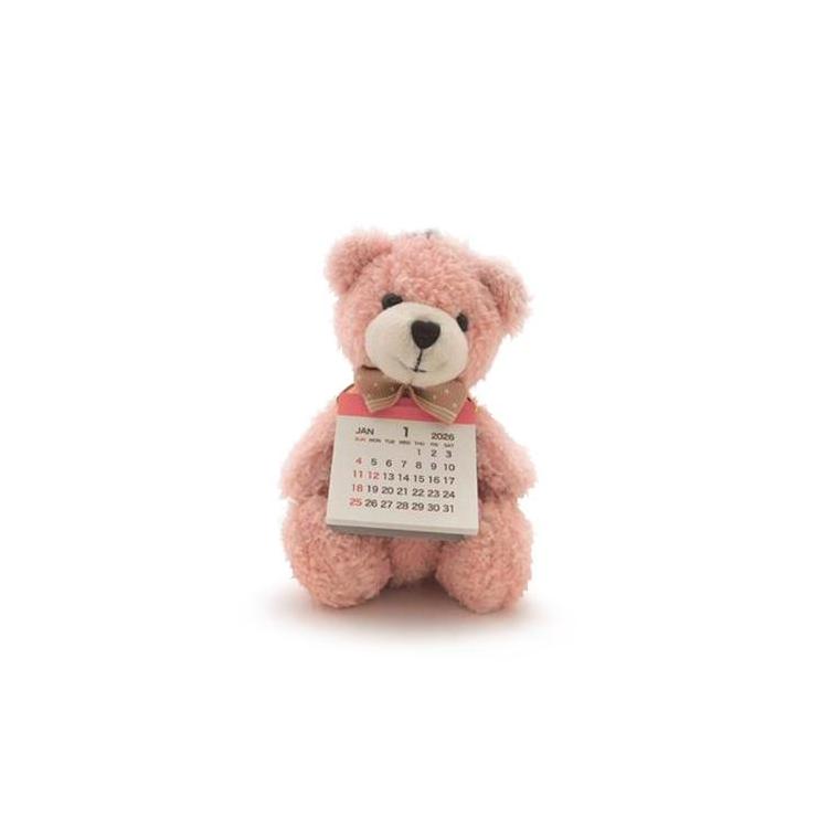 - 2026年1月始まり 卓上 ベアカレンダー ボア ピンク