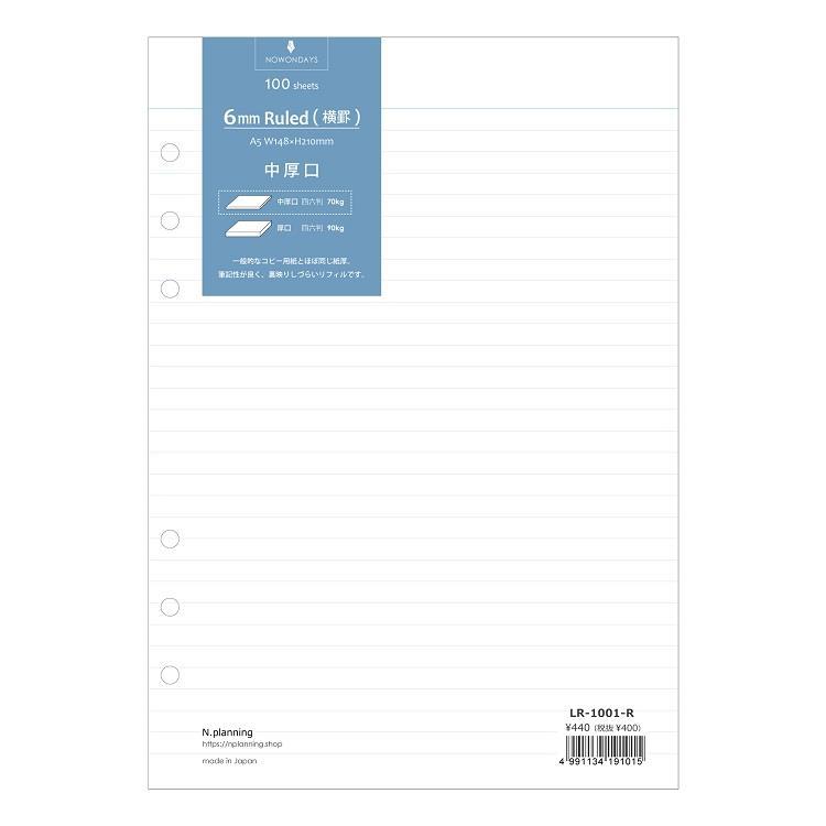 システム手帳・A5サイズに対応した横罫リフィルです。
