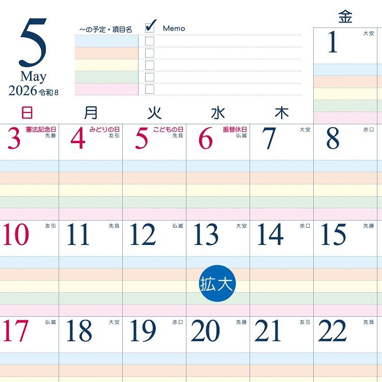 六曜入り。