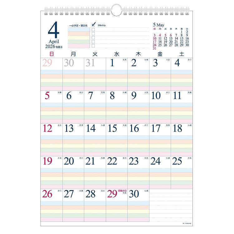 2026年4月始まり 壁掛け B3 ファミリーカレンダー