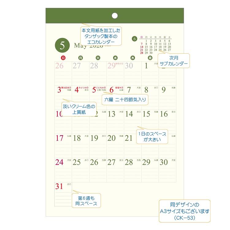 環境に配慮したタンザック製本のエコカレンダーは、リピーターの多い人気商品です。