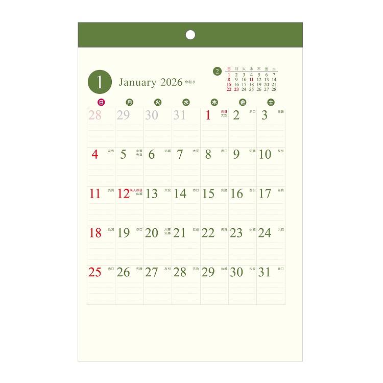 2026年1月始まりカレンダー 壁掛け A4 タンザック