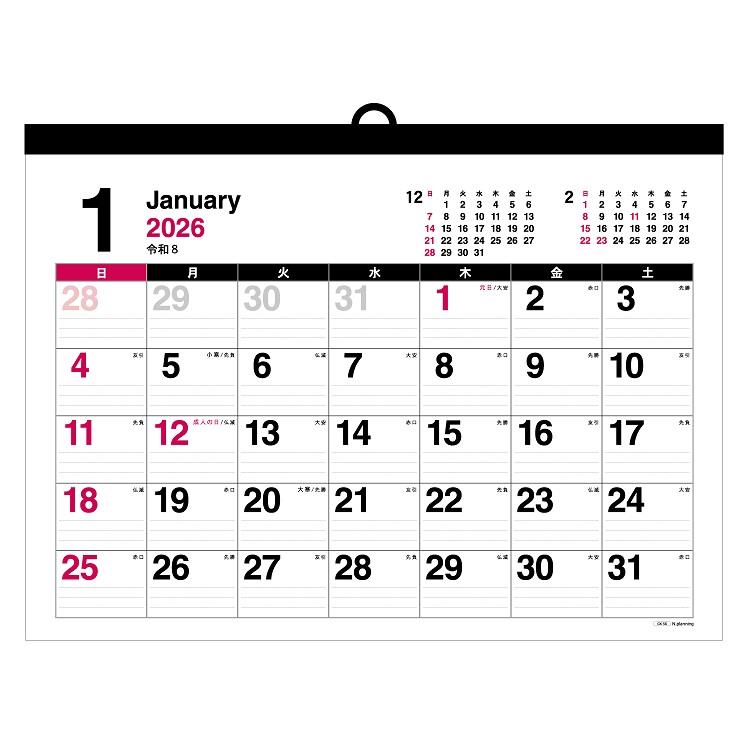 2026年1月始まりカレンダー 壁掛け A3 ホワイト