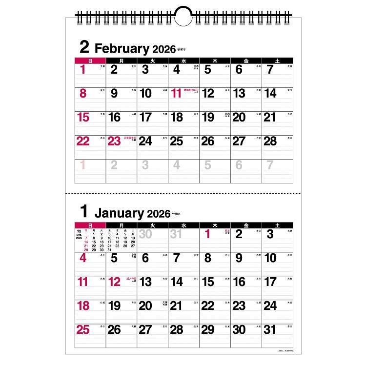 2026年1月始まりカレンダー 壁掛け B3 ホワイト 2マンス