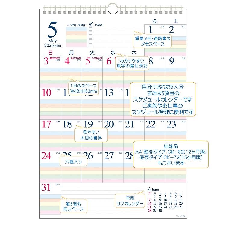 多目的に使用できるのでご家族やお仕事のスケジュール管理、項目ごとの記録に便利です。