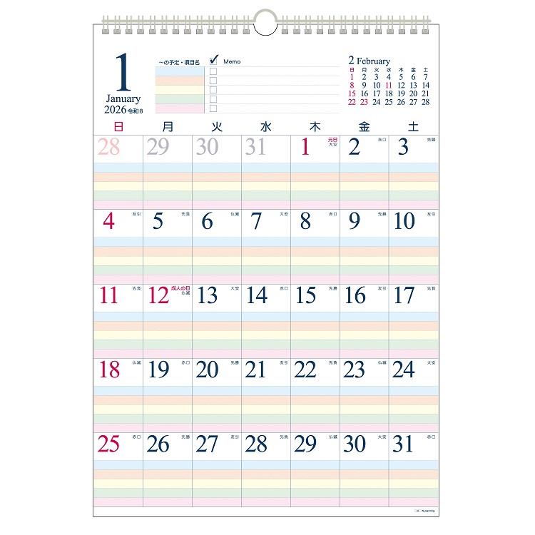 2026年1月始まりカレンダー 壁掛け B3 ファミリースケジュール