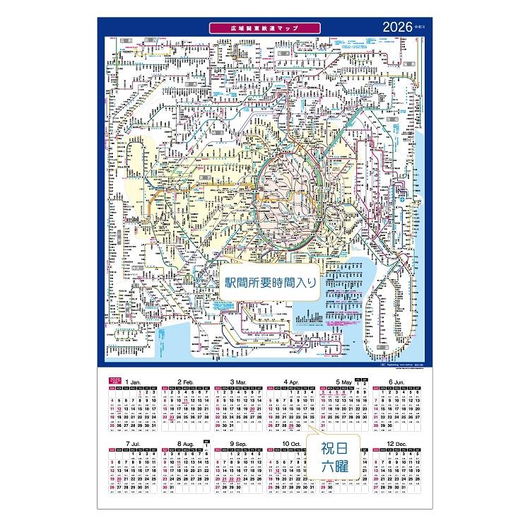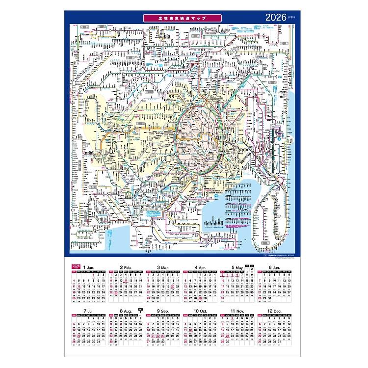 - 2026年1月始まりカレンダー 壁掛け 広域関東鉄道マップ タテ