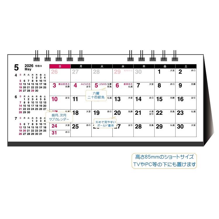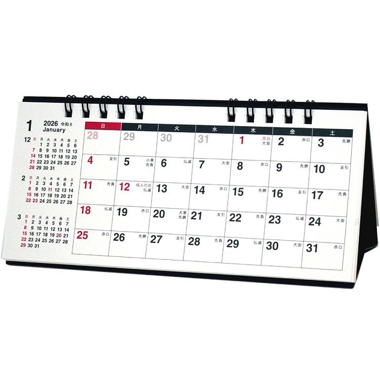 2026年1月始まりカレンダー 卓上 ホワイト S