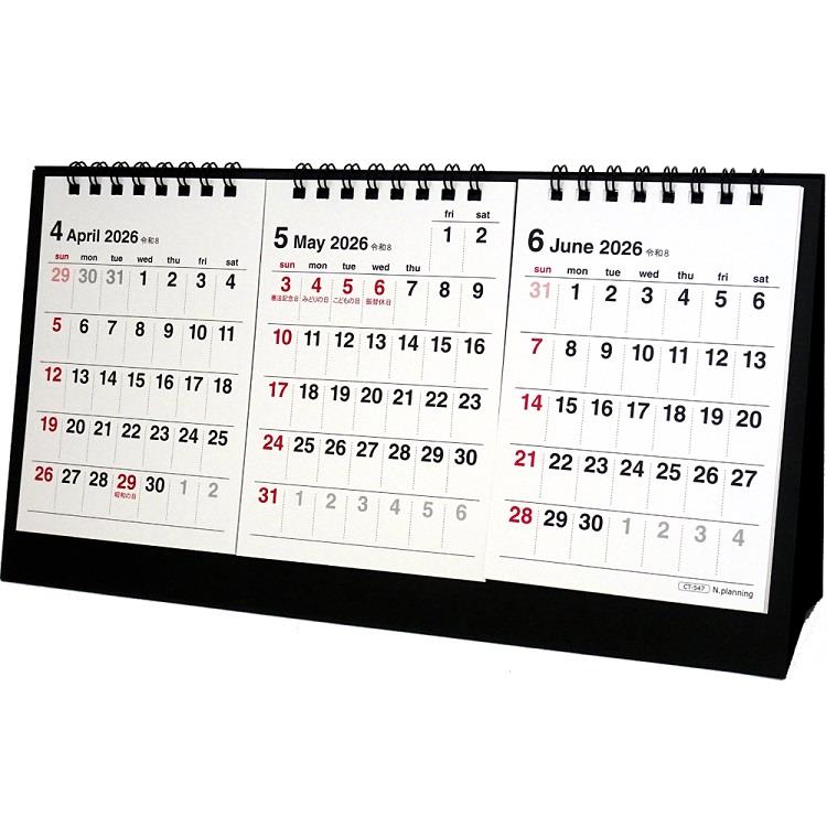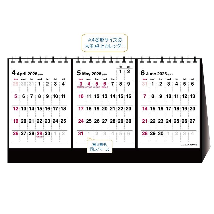 シンプルな大型卓上(A4横型変形) 3ヶ月カレンダー。