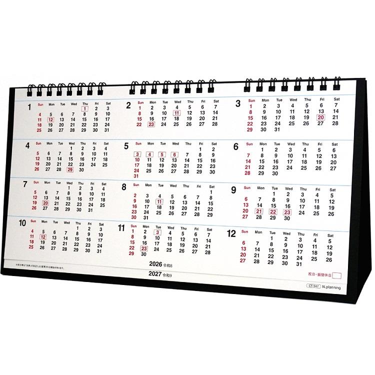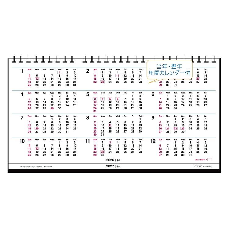 くっきりとした見やすいボールド書体、巻末には2026年と2027年、2ページ/2年分の年間カレンダーが付いています。