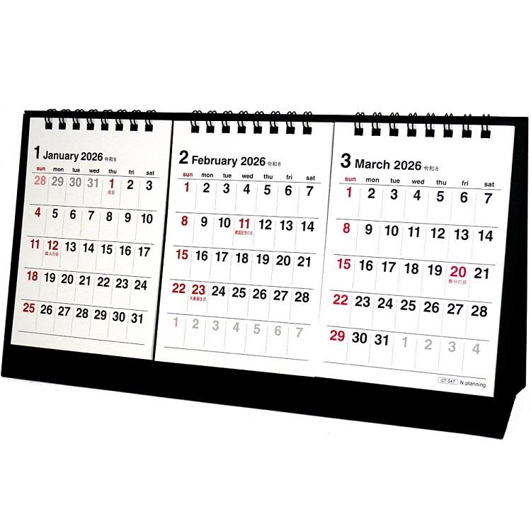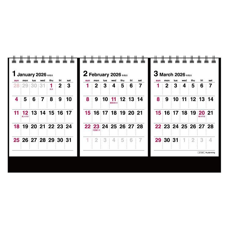 - 2026年1月始まりカレンダー 卓上 3マンス ホワイト