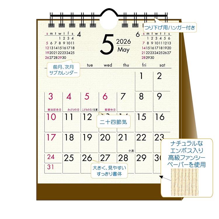 - 2026年1月始まりカレンダー 卓上 コンパクト コットン
