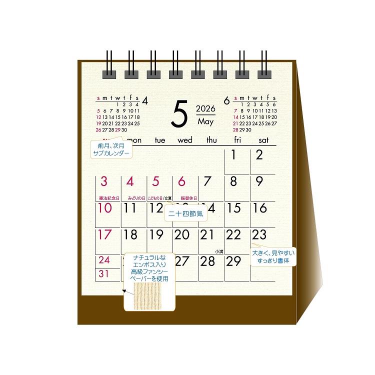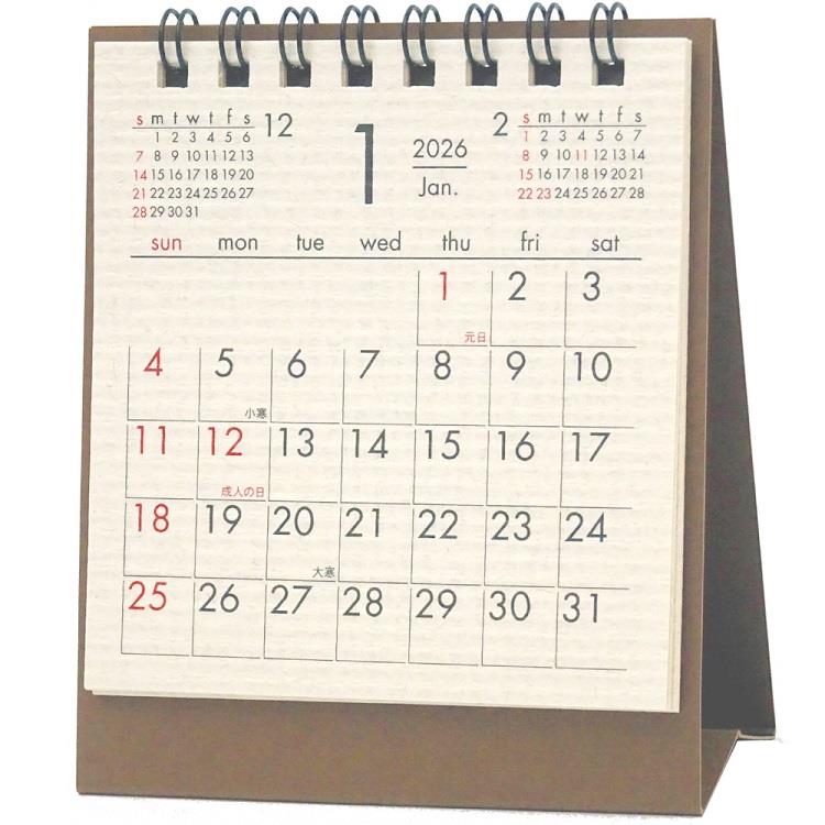 - 2026年1月始まりカレンダー 卓上 ミニスタンド コットン
