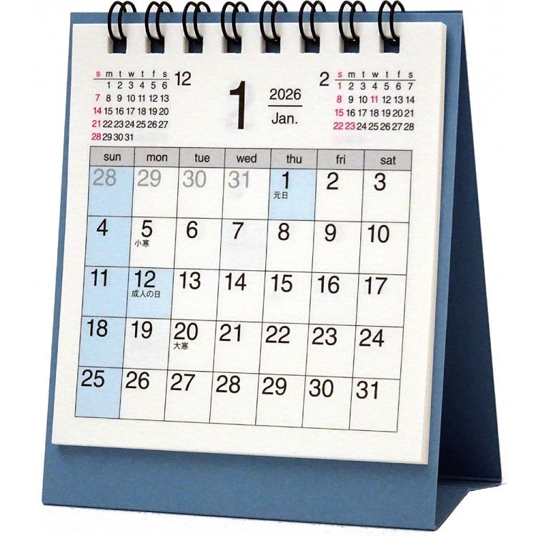 2026年1月始まりカレンダー 卓上 ミニスタンド ブルーポイント