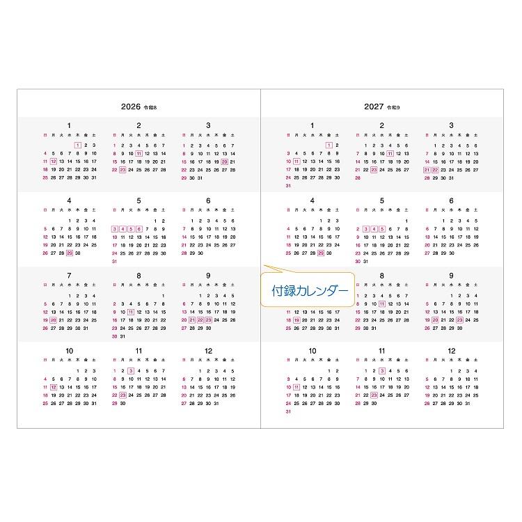A5サイズの日曜始まり月間(ブロック)ダイアリー。
