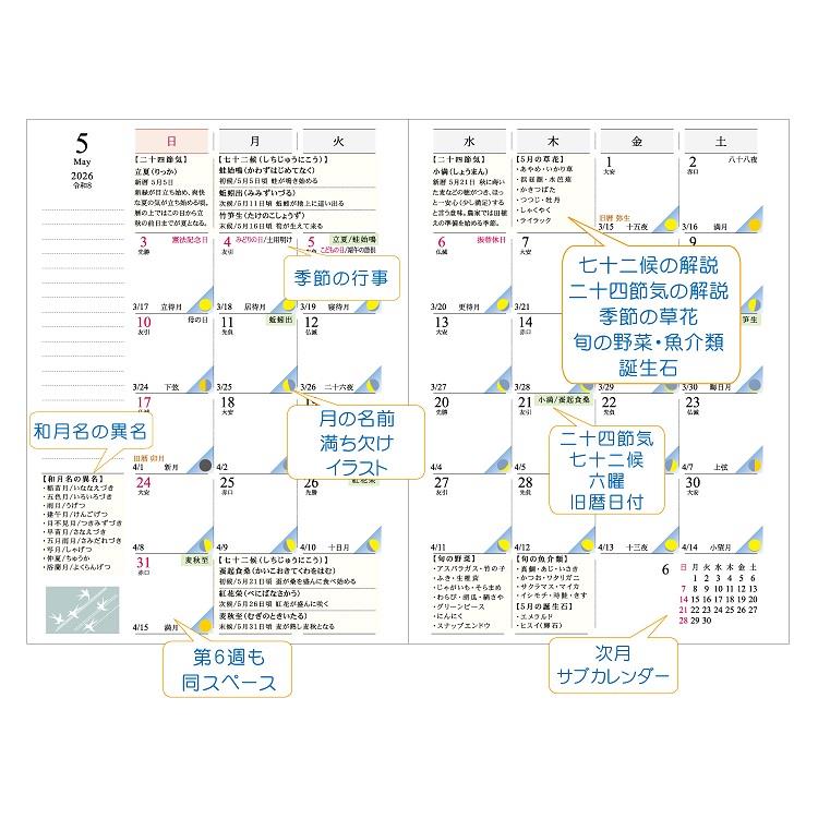 七十二候、季節の行事、月の満ち欠けなどの情報満載の歳時記ダイアリーです。