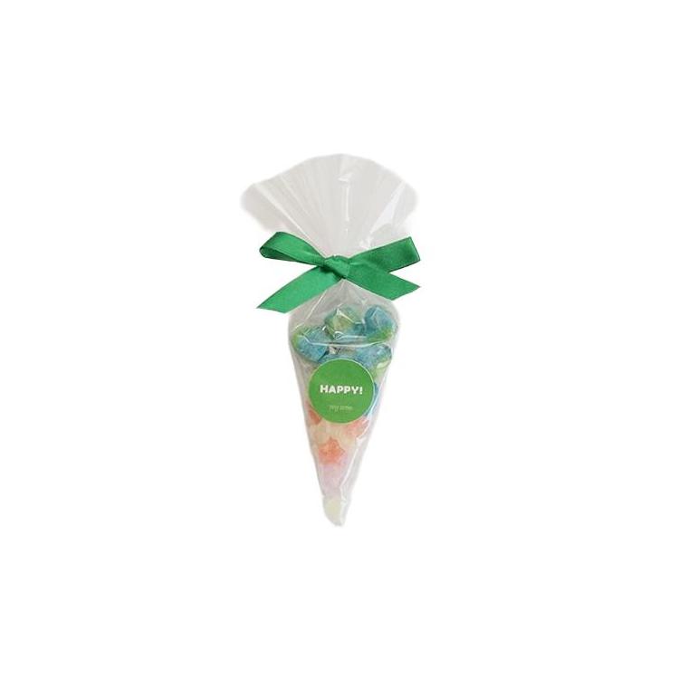 リボンに合わせた「青と緑のハート」が入った、かわいくておいしい推しカラーキャンディです。
