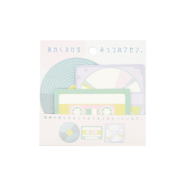 カセットテープ・ミニディスク・CDと、昭和~平成の音楽にかかわるレトロ小物をモチーフにしました。