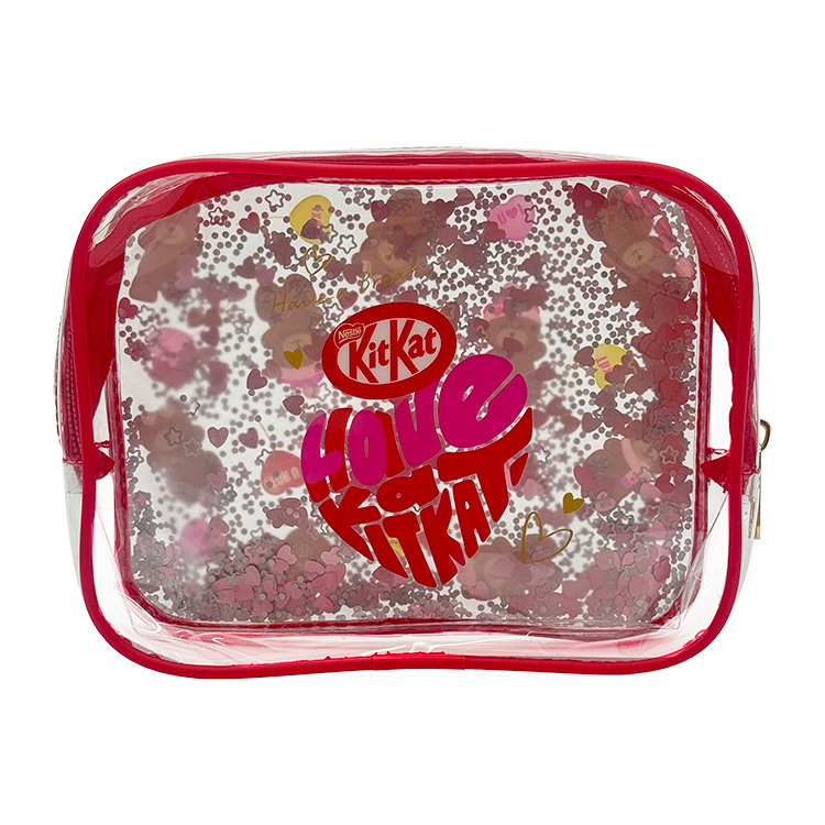 人気のチョコレートブランド「KITKAT」から、この季節にしか出会うことのできないクマの形をした「ハートフルベアー」をモチーフにしたスクエアポーチです。