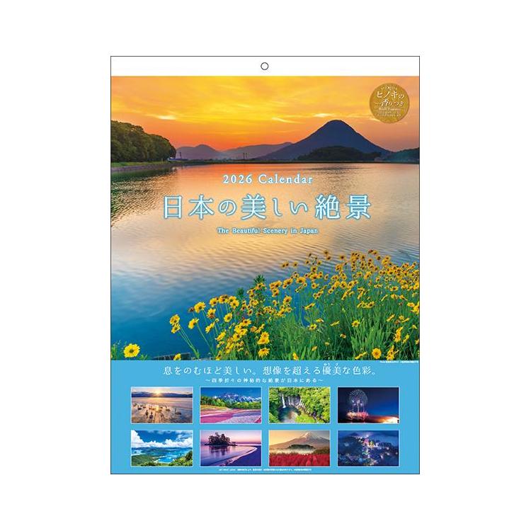 2026年1月始まりカレンダー 壁掛け 日本の美しい絶景 ヒノキの香り付き