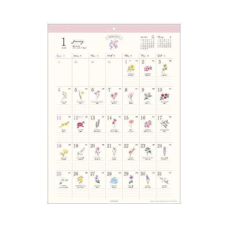 - 2026年1月始まりカレンダー 壁掛け 365日花ことば