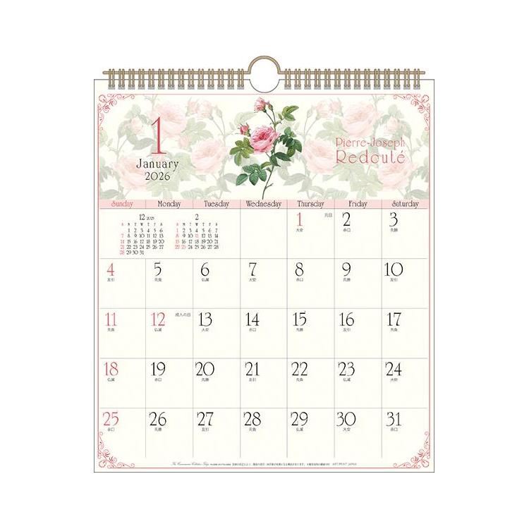 2026年1月始まりカレンダー 壁掛け 30角 ルドゥーテ ばらの香り付き