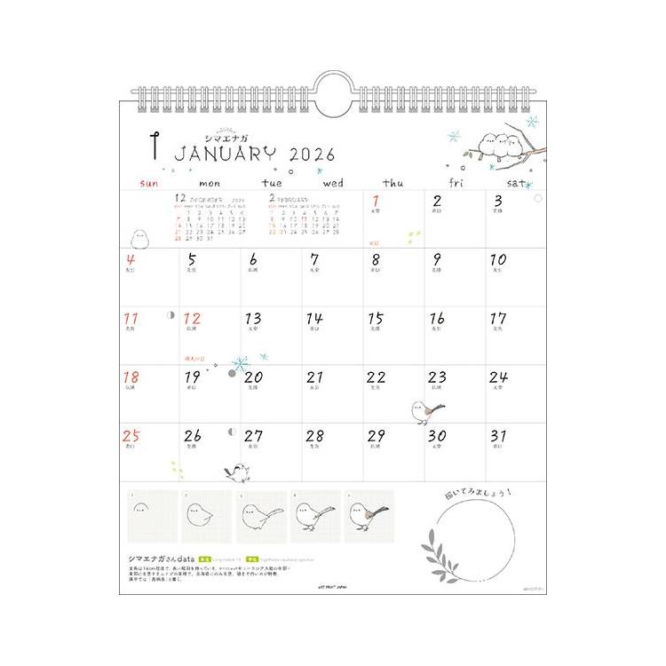 2026年1月始まりカレンダー 壁掛け 30角 かわいいとりの描き方