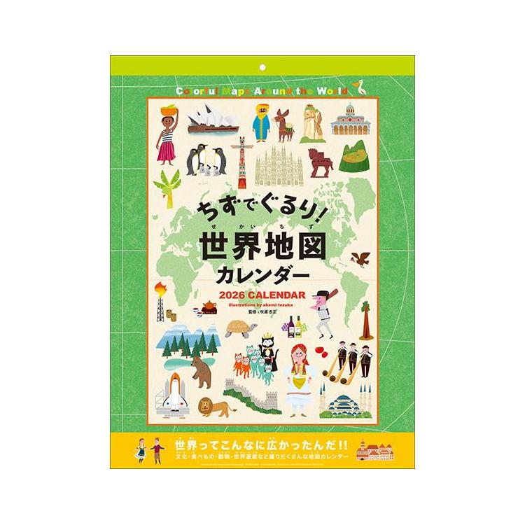 - 2026年1月始まりカレンダー 壁掛け 世界地図カレンダー てづかあけみ