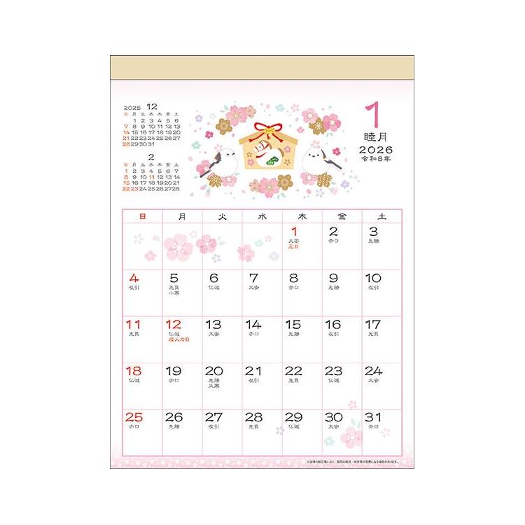 - 2026年1月始まりカレンダー 壁掛け 和風 花もよう 小