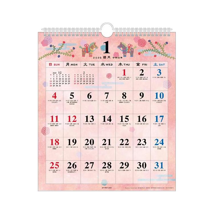 2026年1月始まりカレンダー 壁掛け 和の歳時記 小
