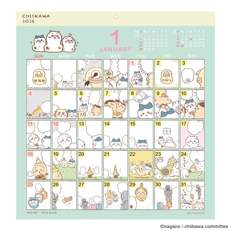 - 2026年1月始まりカレンダー 壁掛け コミックデザイン ちいかわ