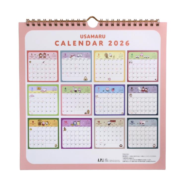 LINEスタンプの人気キャラクター「うさまる」の2026年版壁掛けカレンダーです。