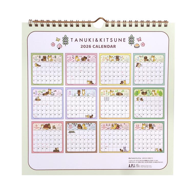 人気コミック「タヌキとキツネ」の2026年版壁掛けカレンダーです。