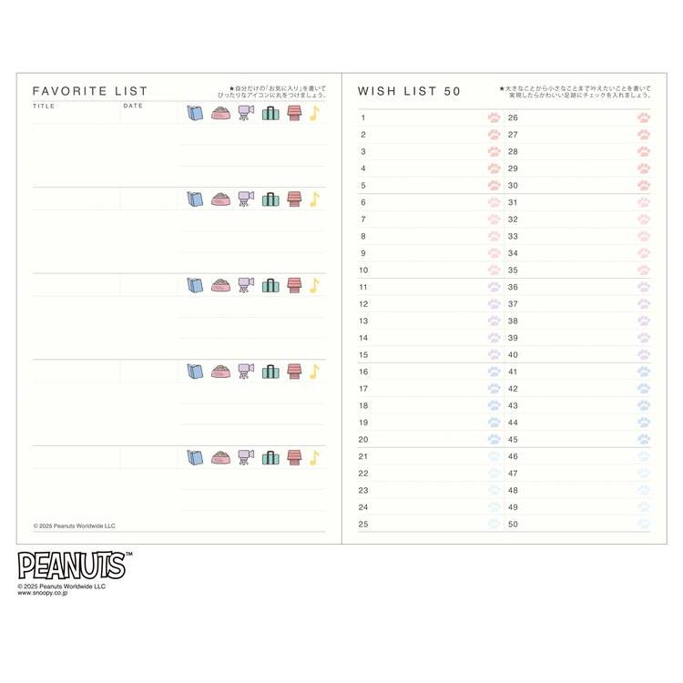 箔押し加工を施した表紙に、月ごとに変わるスヌーピーたちのイラストが可愛く、気分があがります♪