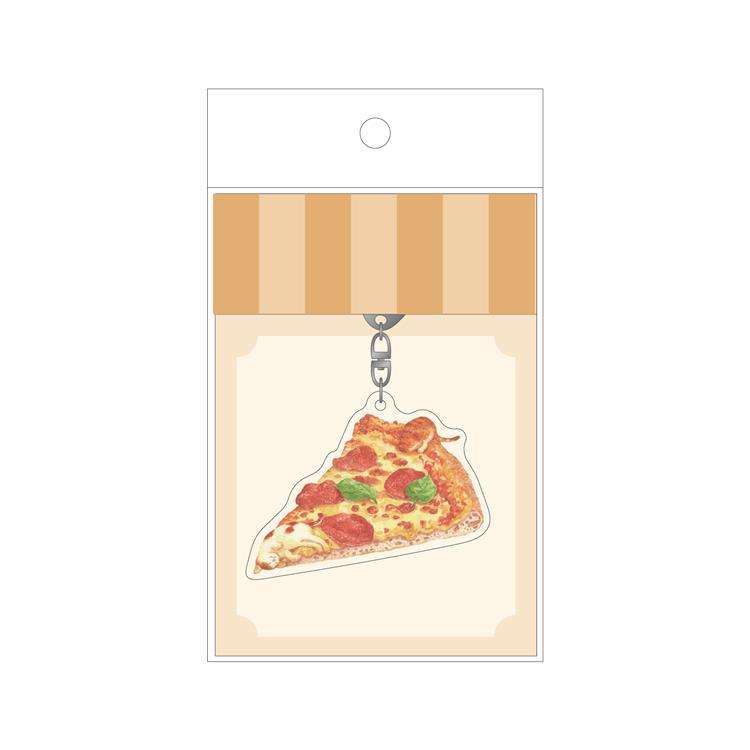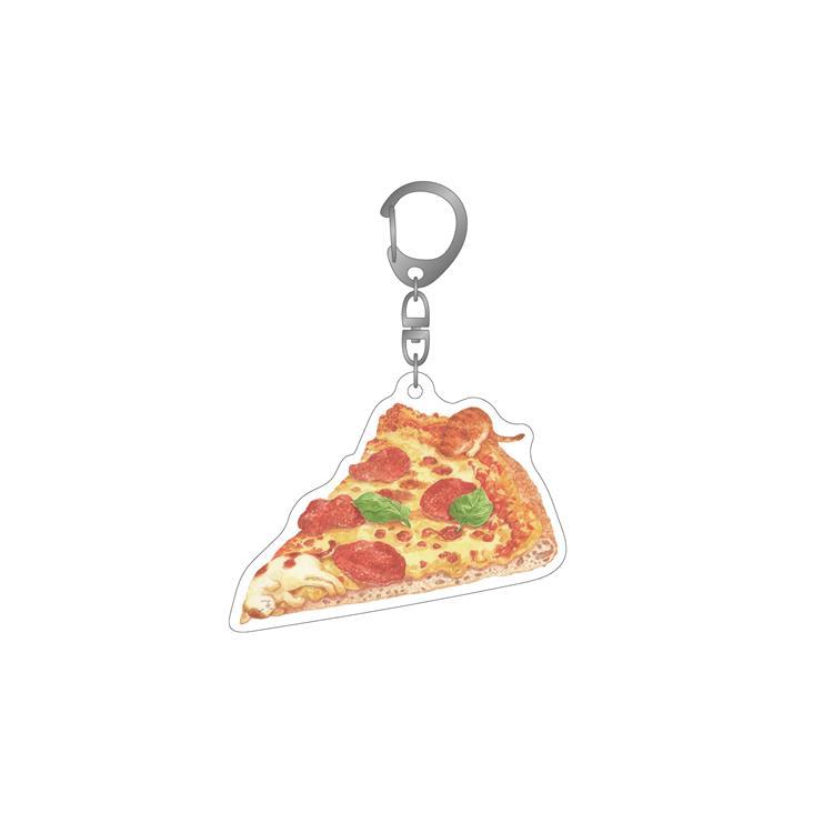 食べ物に同化するかのようなユニークなイラストのアクリルキーホルダー。