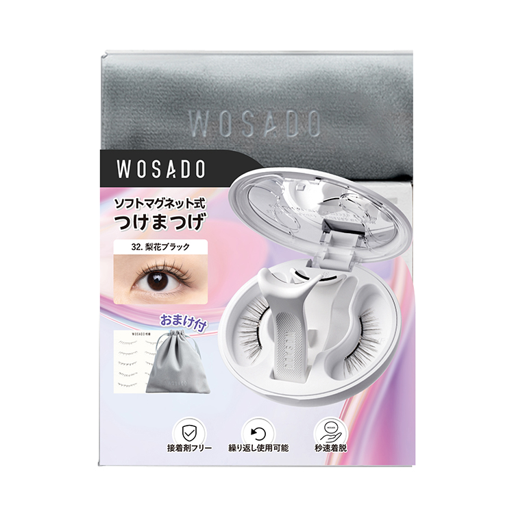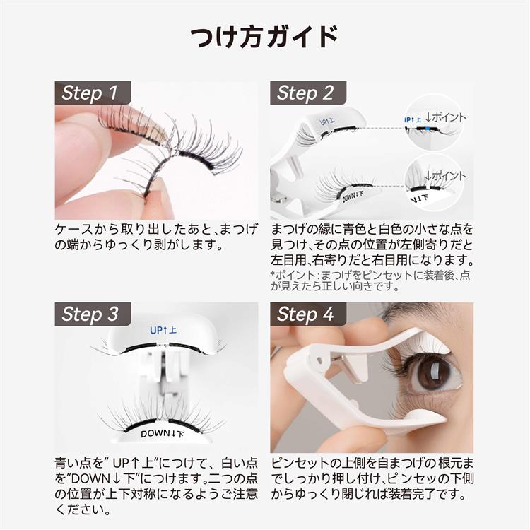 のりいらずで繰り返し使用でき、自まつげや目に優しい。