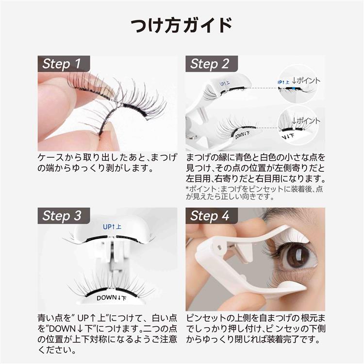 のりいらずで繰り返し使用でき、自まつげや目に優しい。