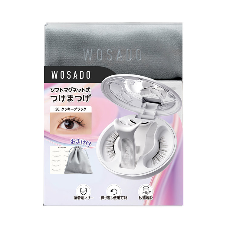 のりいらずで繰り返し使用でき、自まつげや目に優しい。