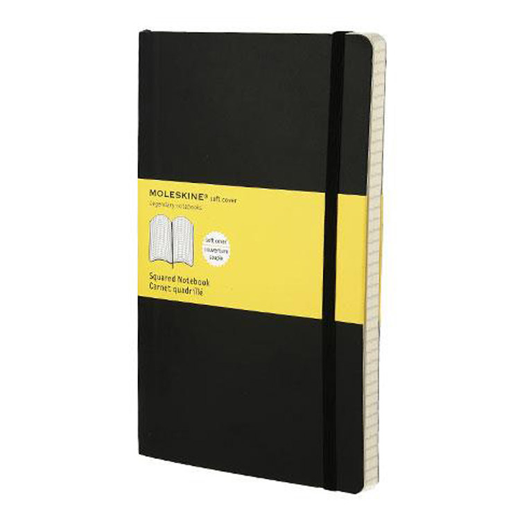 シンプルなデザインの中に機能性を持ち合わせた、モレスキン定番ラージサイズのノートブック。図形も書きやすい方眼ノートです。