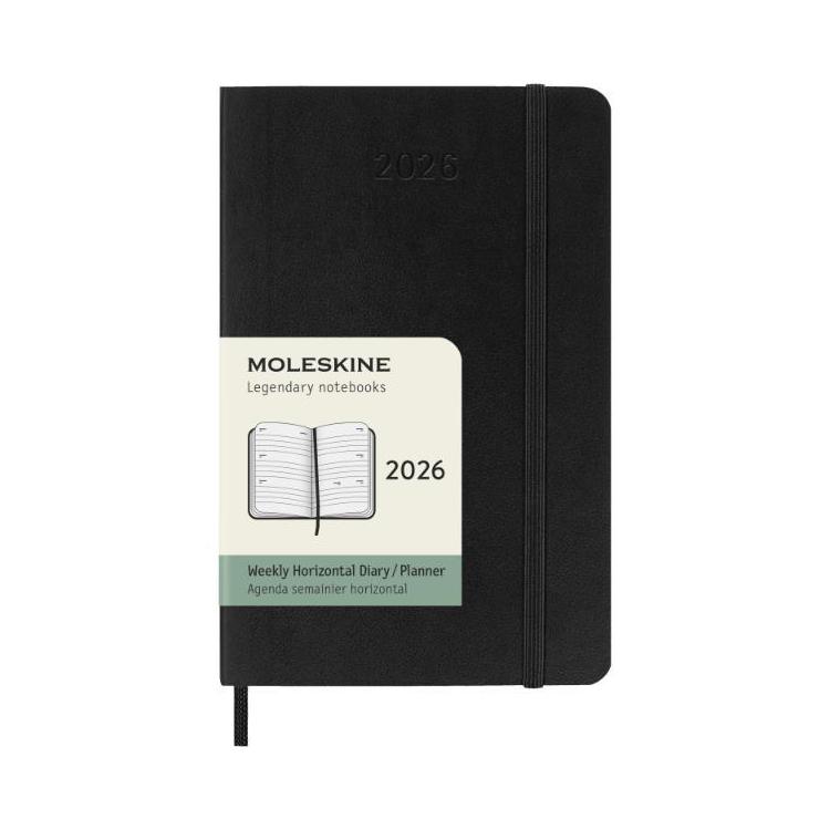 - 2026年1月始まり手帳 週間ホリゾンタル 横型 ポケット モレスキン ソフトカバー ブラック