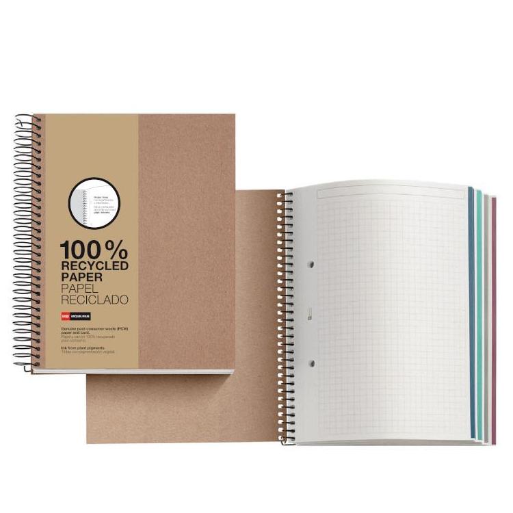 環境に優しい100%再生紙を使用しています。クラフト地の表紙は無地のため、自由にデコレーションして楽しめます。